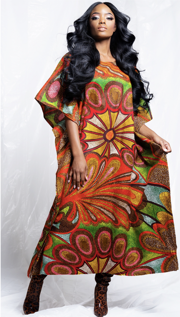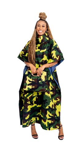 African Print Caftan 1 piece Cowl Neck Caftan Colors: Camouflage, Kente, Multi Sizes: One size fit up to size 2X