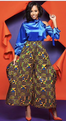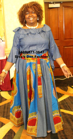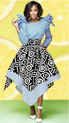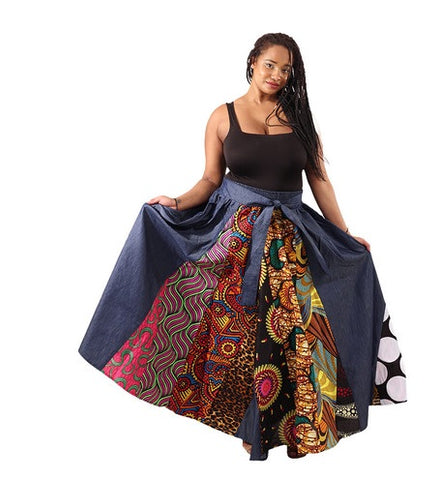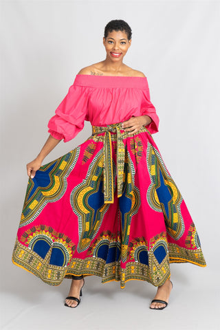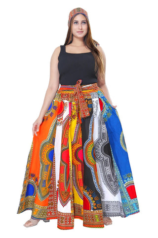 Asymmetrical Stripe Dashiki Maxi Skirt