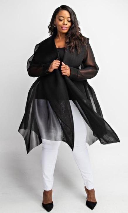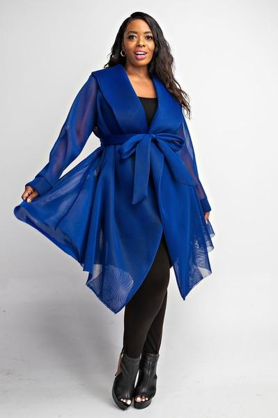 Asymmetrical Long Sleeve Jacket Colors: Black, Mustard, Royal Size: 1X (14/16), 2X (18/20), 3X (22/24)