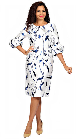 Diana 8763 1 piece Brocade Dress Colors: White/Navy Sizes: 8, 10, 12, 14, 16, 18, 20, 22, 24