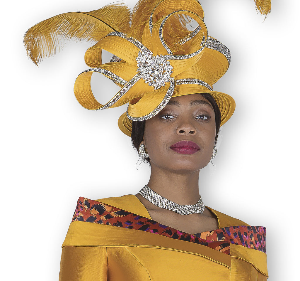 Elite Champagne H6168 1 piece Hat Colors: Gold, Royal MATCHING SKIRT SUIT AVAILABLE