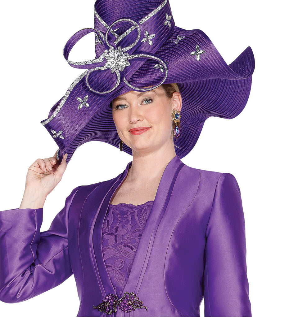 Elite Champagne H6213 1 piece Hat Colors: Gold, Purple MATCHING Skirt Suit AVAILABLE