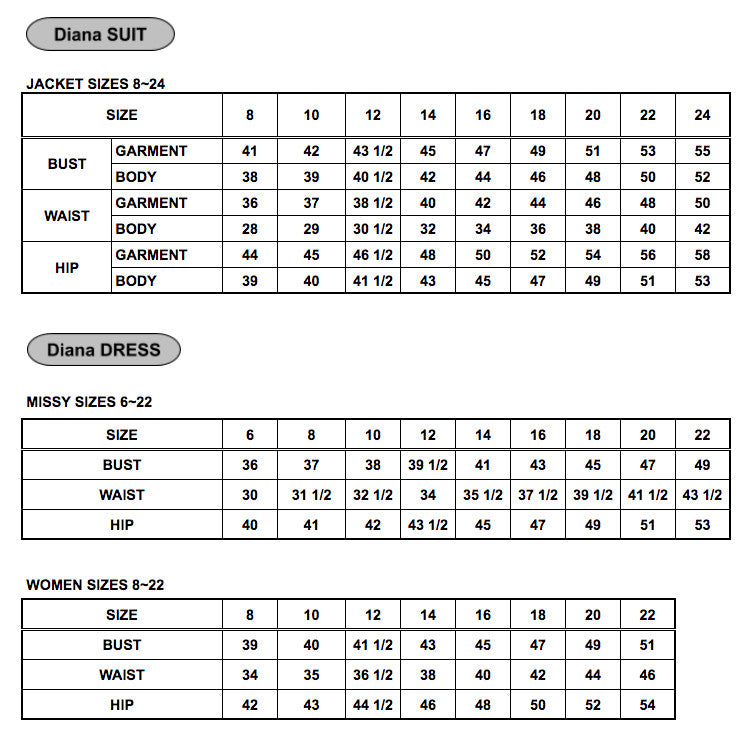 Sizes: 8, 10, 12, 14, 16, 18, 20, 22, 24