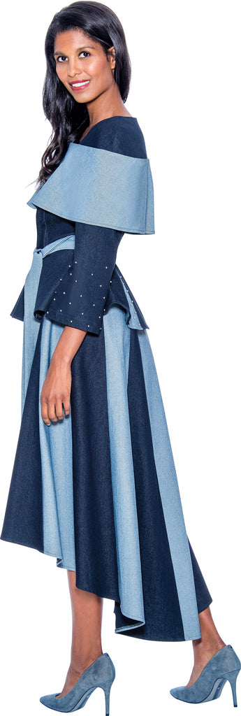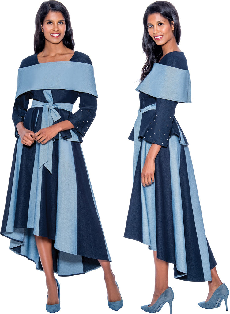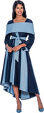 Devine Sport 63712 1 piece Two Tone Denim Dress Colors: Blue Sizes: 8, 10, 12, 14, 16, 16W, 18, 18W, 20W, 22W, 24W, 26W