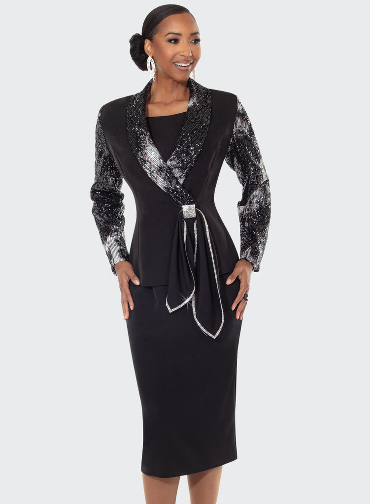 Donna Vinci 12213 black sequin skirt suit
