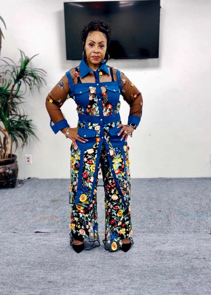 3 piece 3D Floral Pant Suit (duster, palazzo pant, & tank top)
