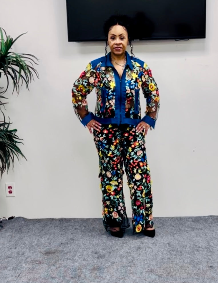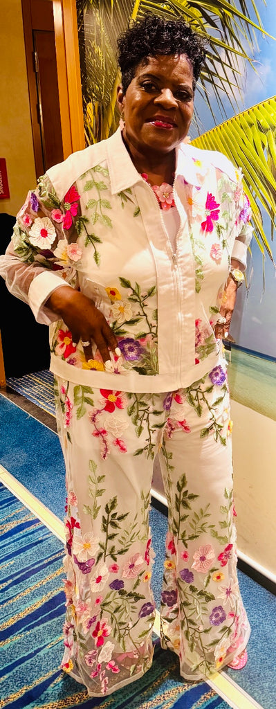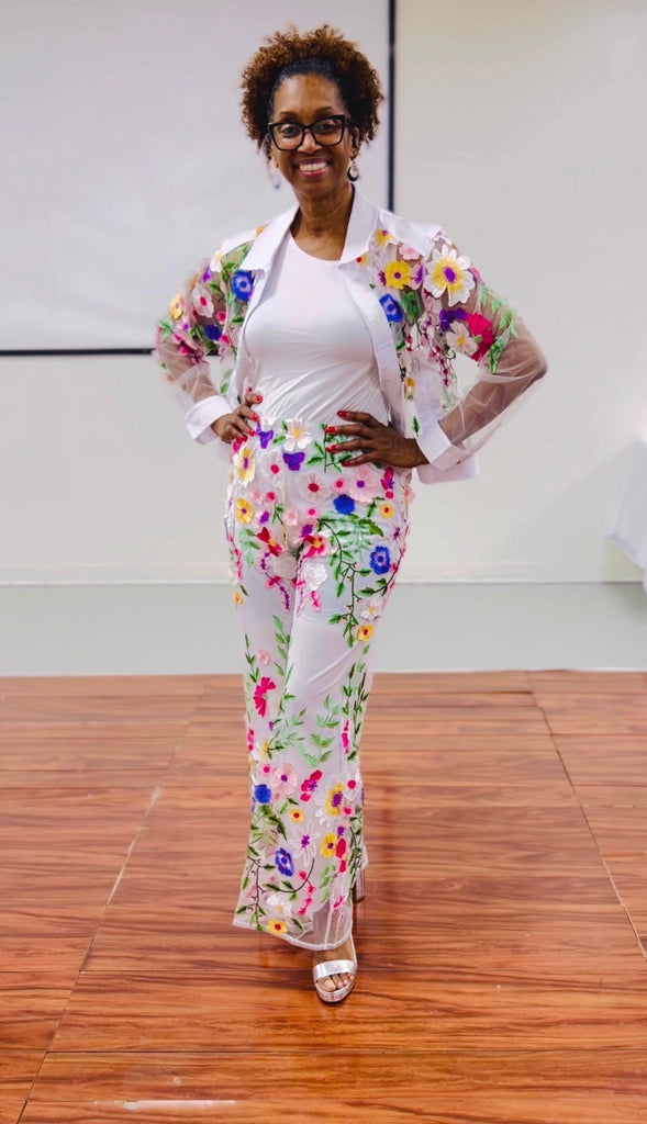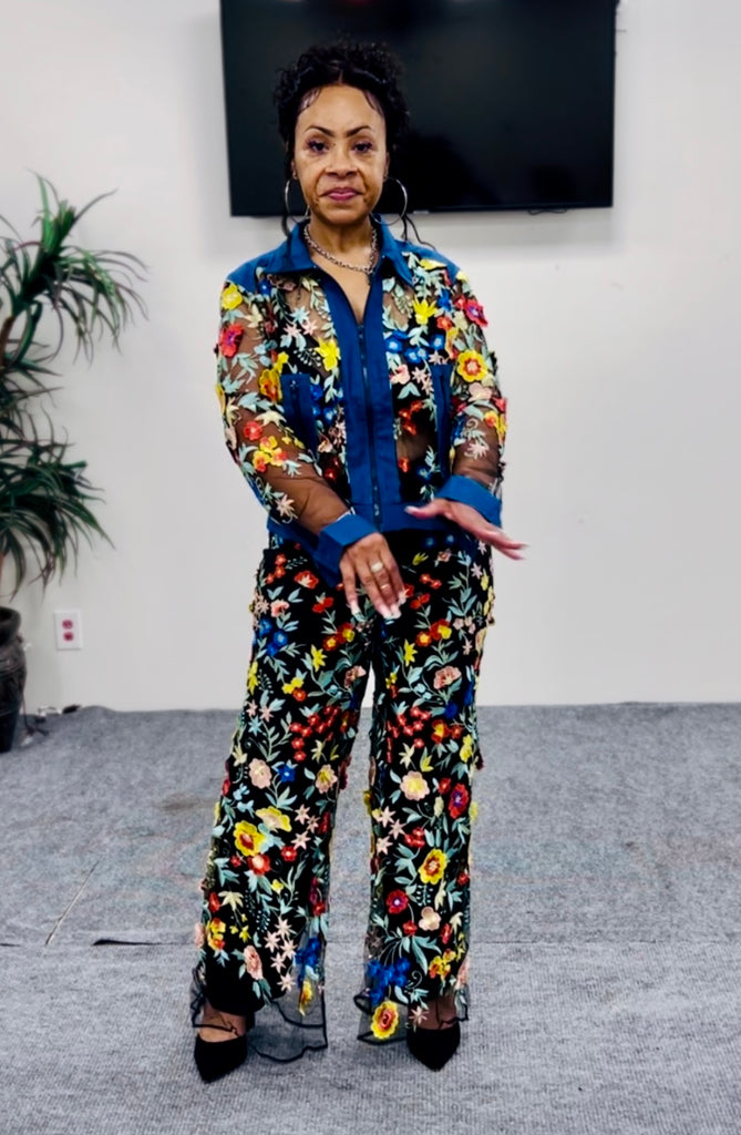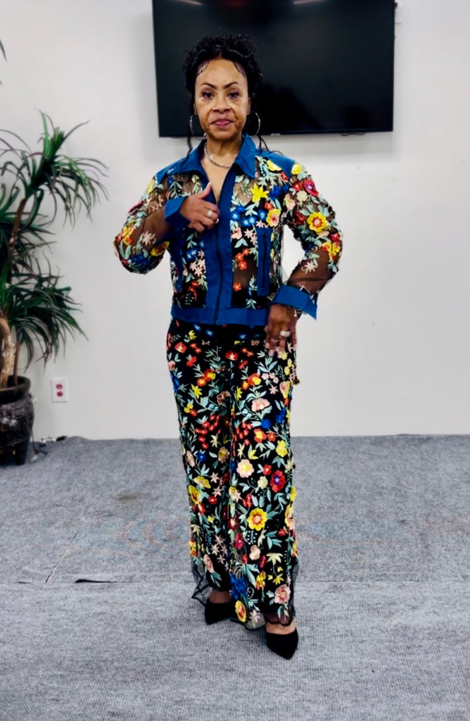 3 piece 3D Floral Pant Suit (jacket, palazzo pant, & tank top)