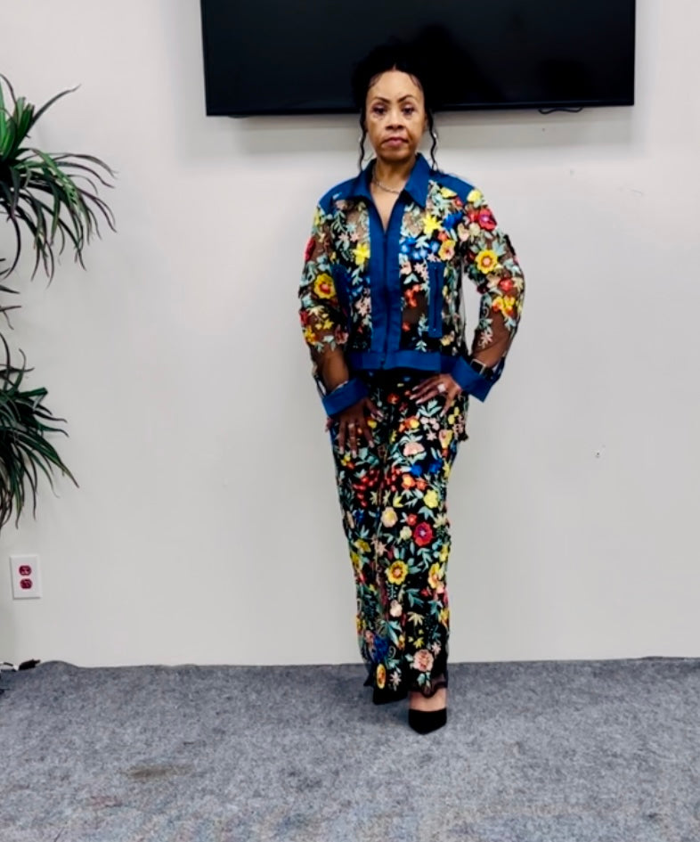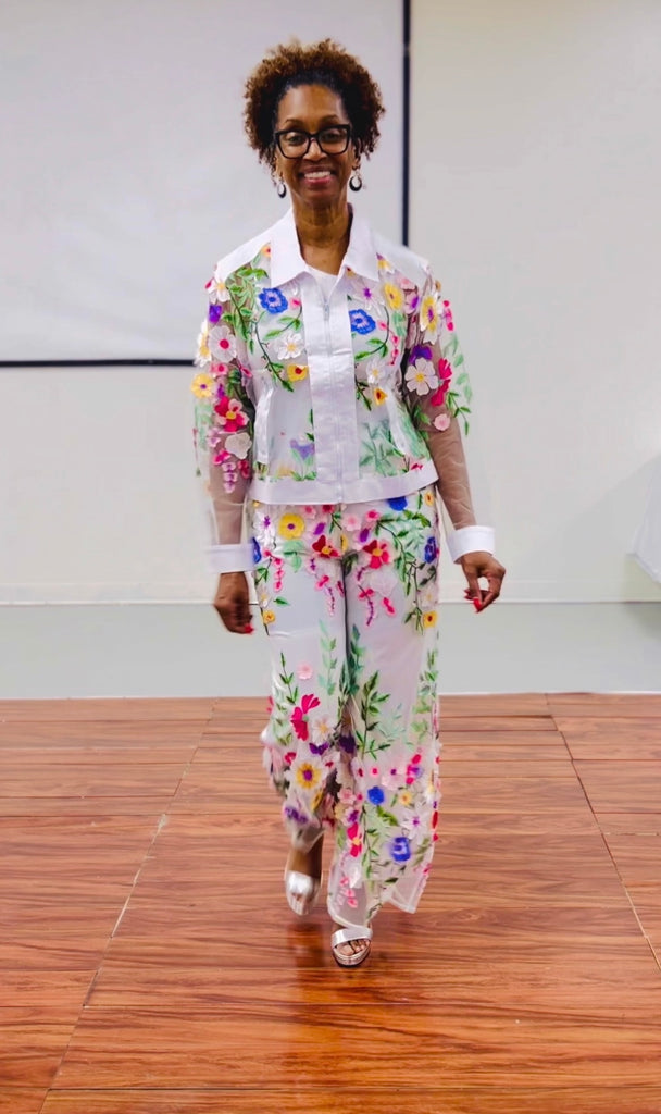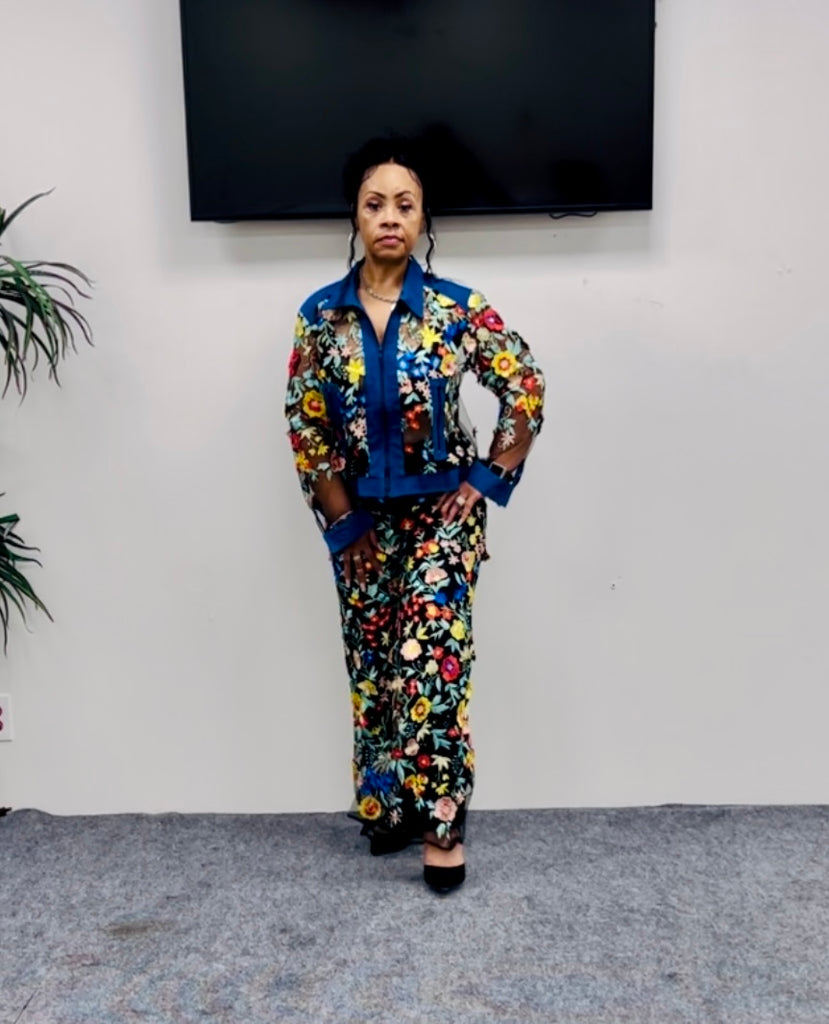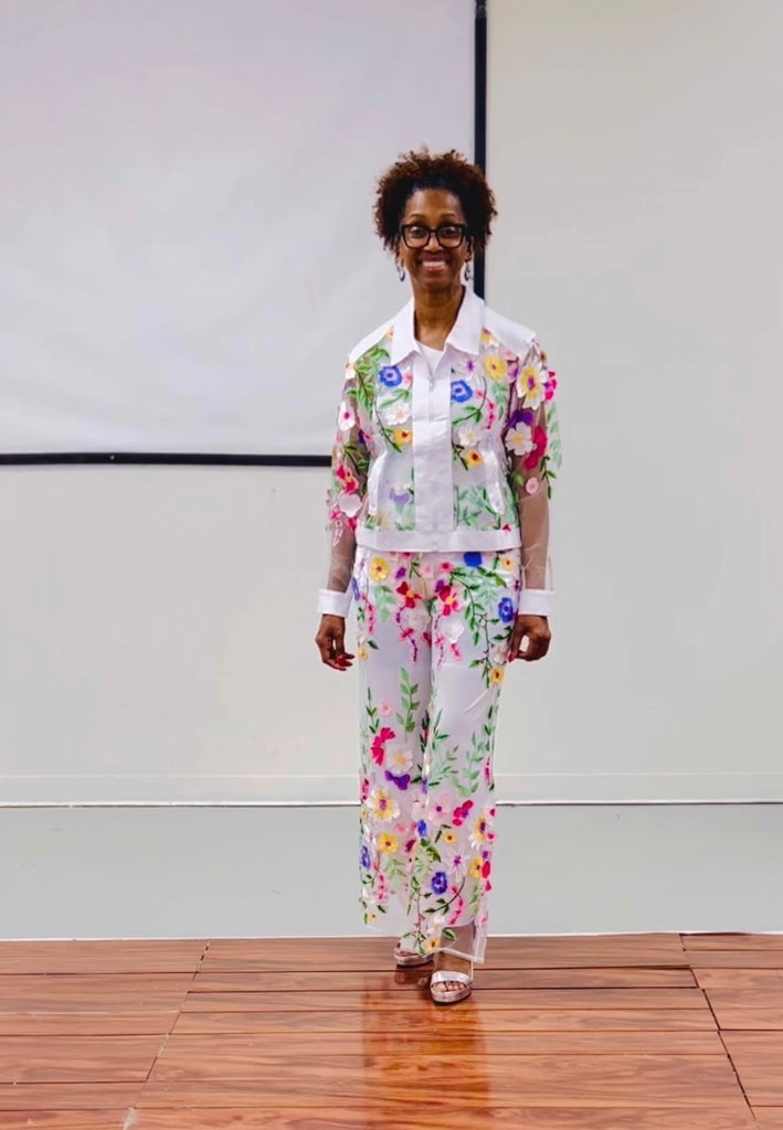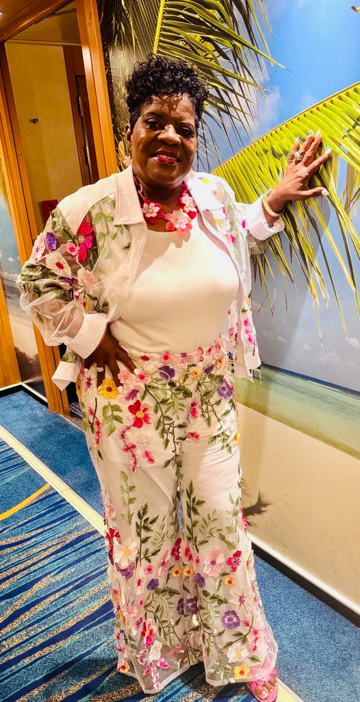 3 piece 3D Floral Pant Suit (jacket, palazzo pant, & tank top)