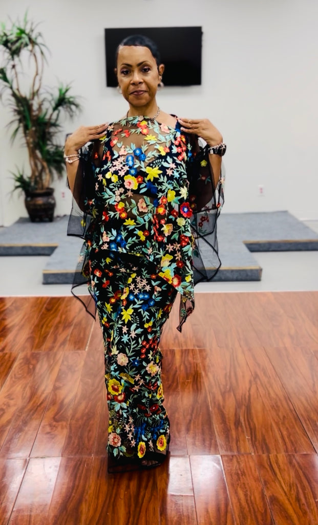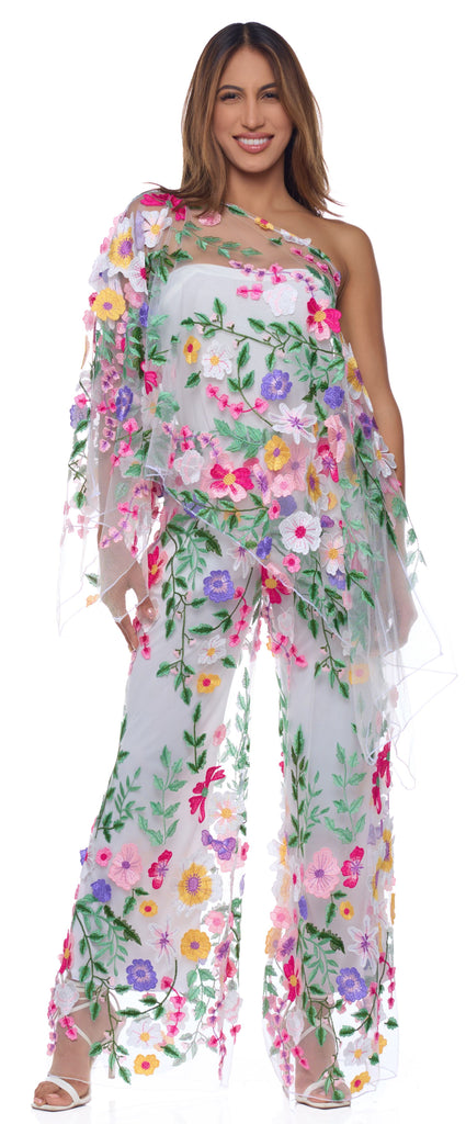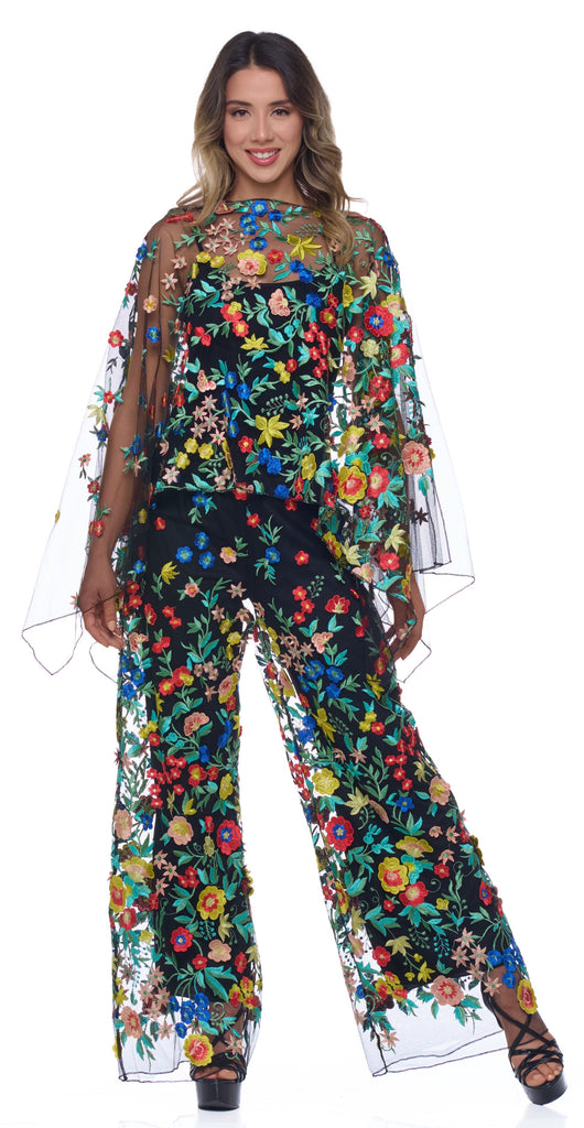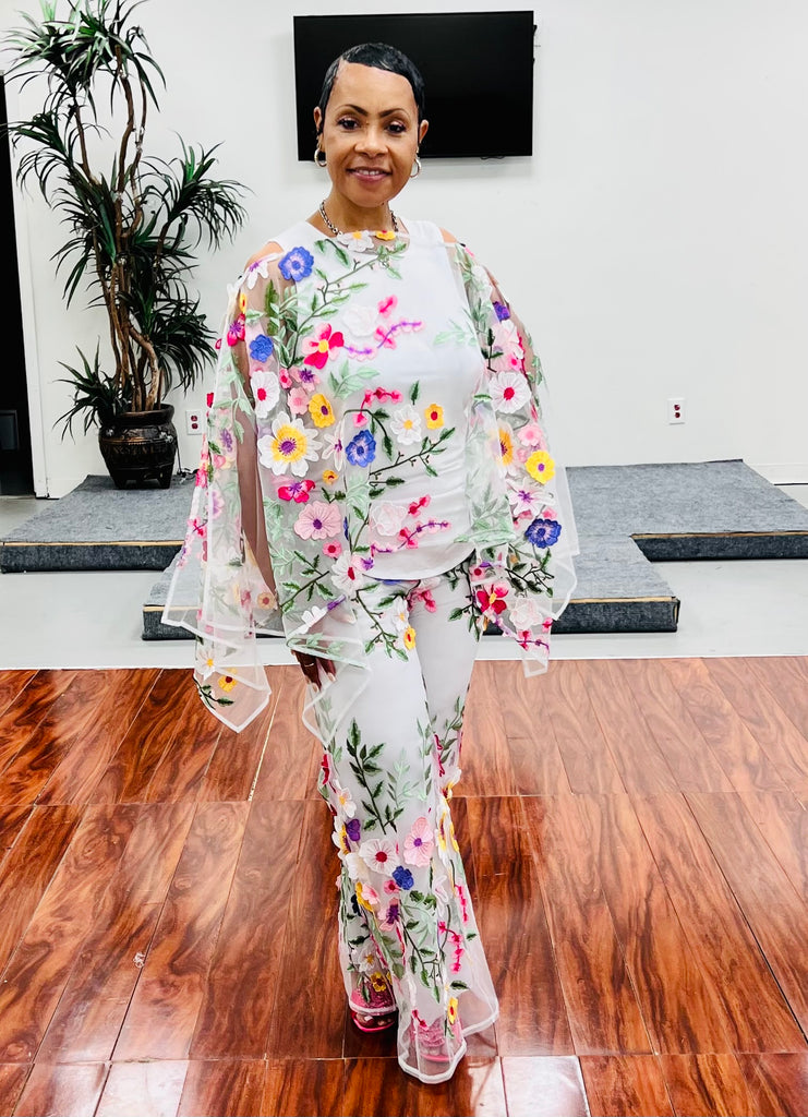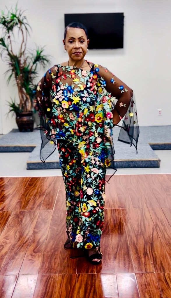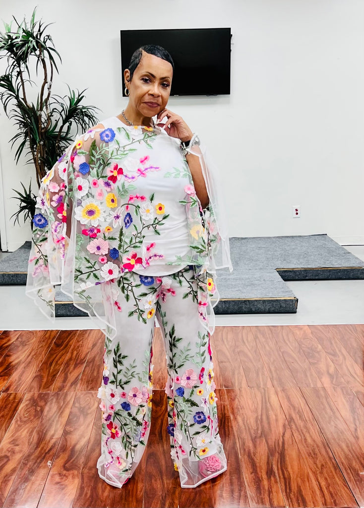3 piece 3D Floral Pant Suit (scarf, palazzo pants, and tank top)