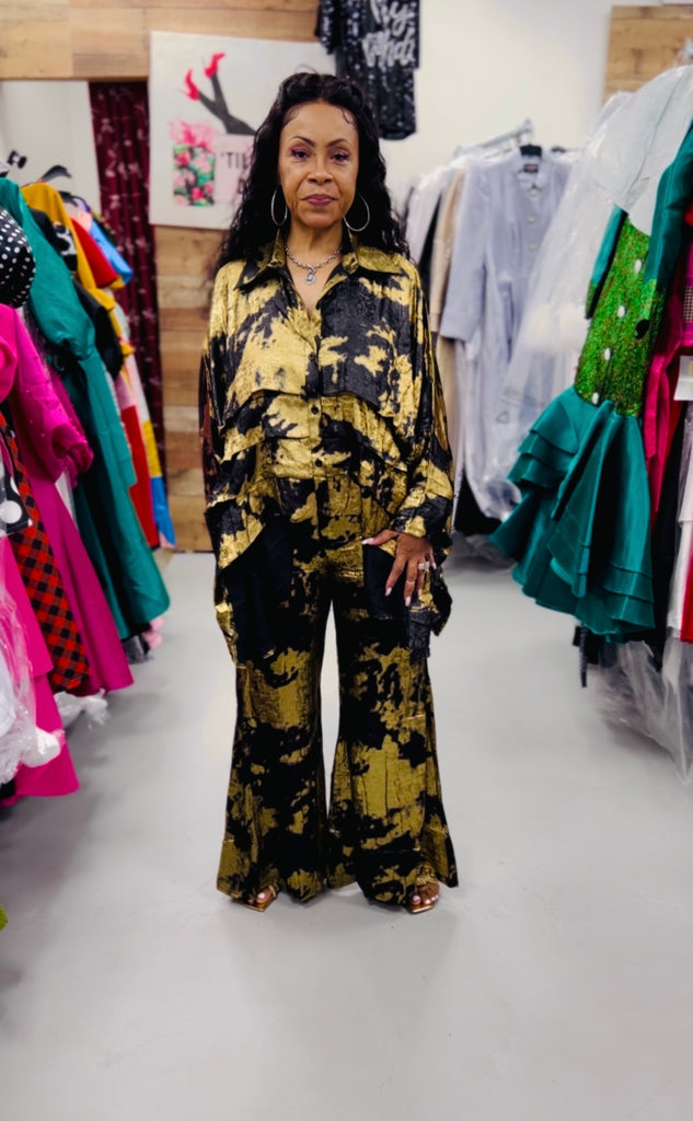 2 piece Ruffle Blouse & Palazzo Pant Set