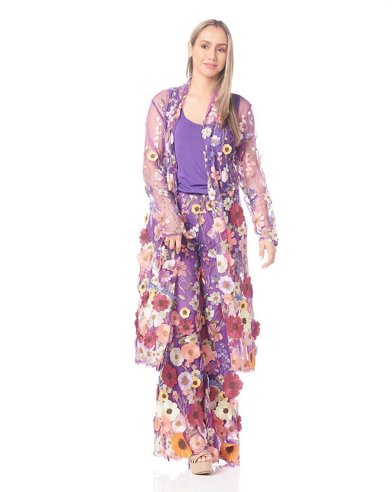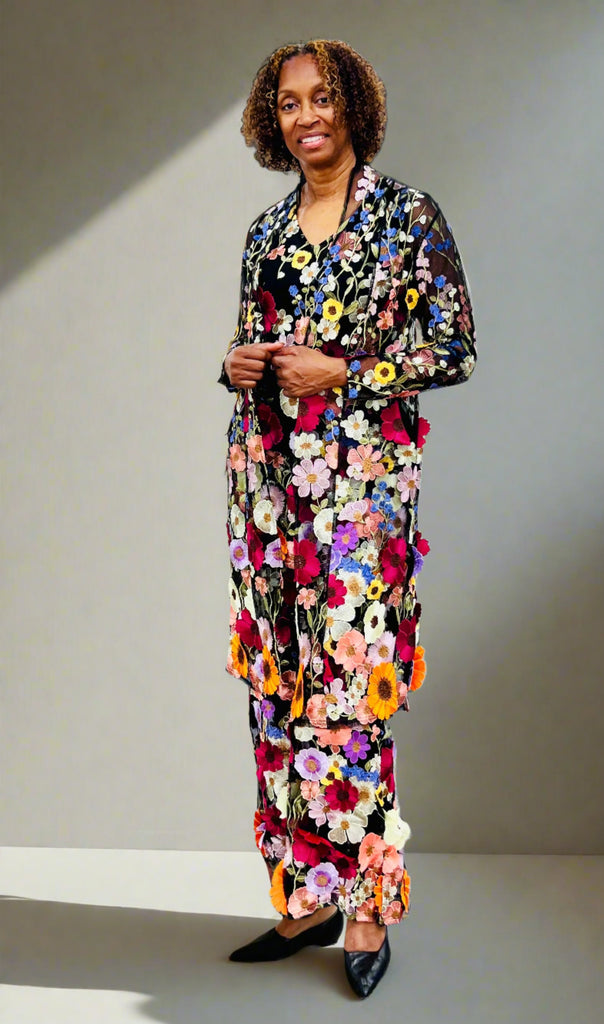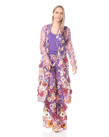 3 piece 3D Floral Pant Suit (duster, palazzo pant, & tank top)