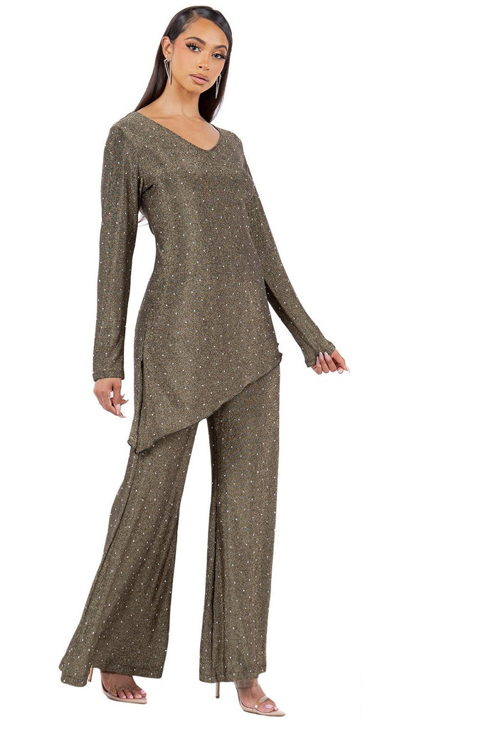 Rhinestone Embellished Asymmetrical Tunic Set