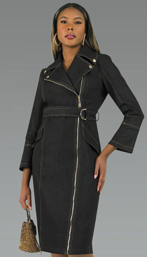 Lily & Taylor 5064 1 piece Denim Dress Colors: Black, White Sizes: 4, 6, 8, 10, 12, 14, 16, 18, 20, 22, 24