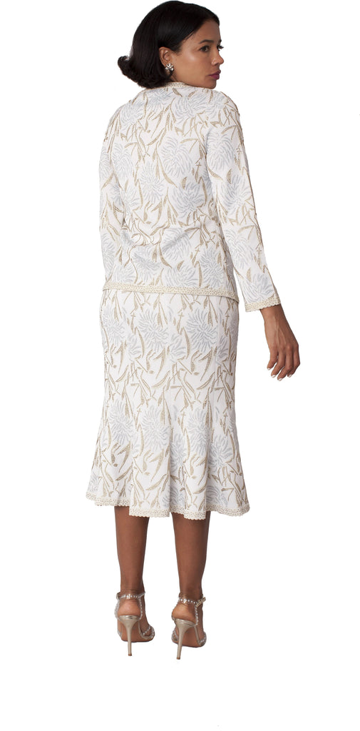 Liorah Knit 7317 2 Piece Knit Skirt Suit Color: Ivory/Gold Sizes: 8, 10, 12, 14, 16, 18, 20, 22
