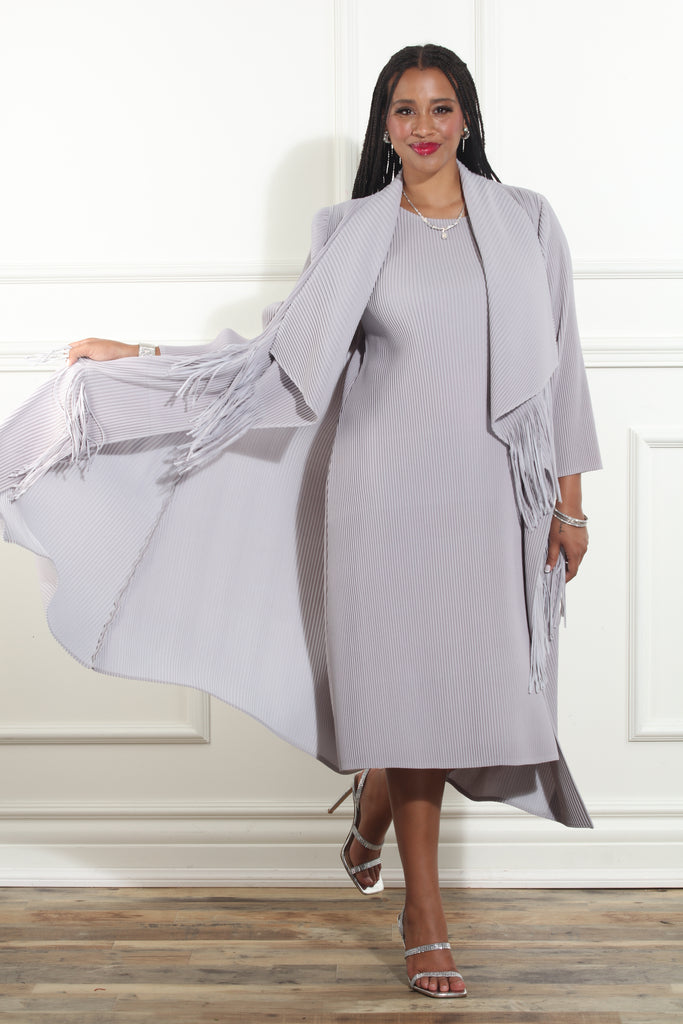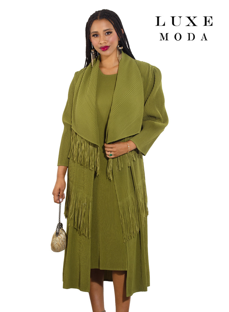 Luxe Moda 466 2 Piece Jacket Dress Colors: Cinnamon, Lime, Silver Sizes: S/M, L/XL, 1X/2X