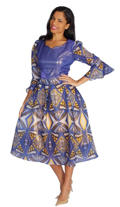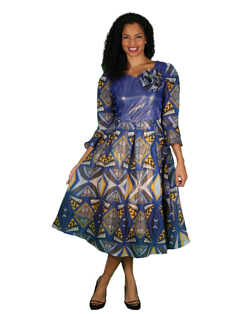 Diana 8542 1 piece Print Dress Colors: Royal/Yellow Sizes: 8, 10, 12, 14, 16, 18, 20, 22, 24