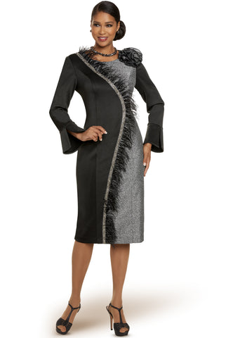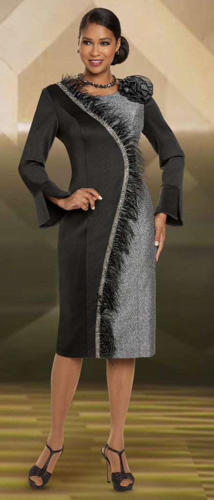 Donna Vinci 11889 1 Pc Scuba Dress Colors: Black/Silver Dress Length: 45" Sizes: 6, 8, 10, 12, 14, 16, 18