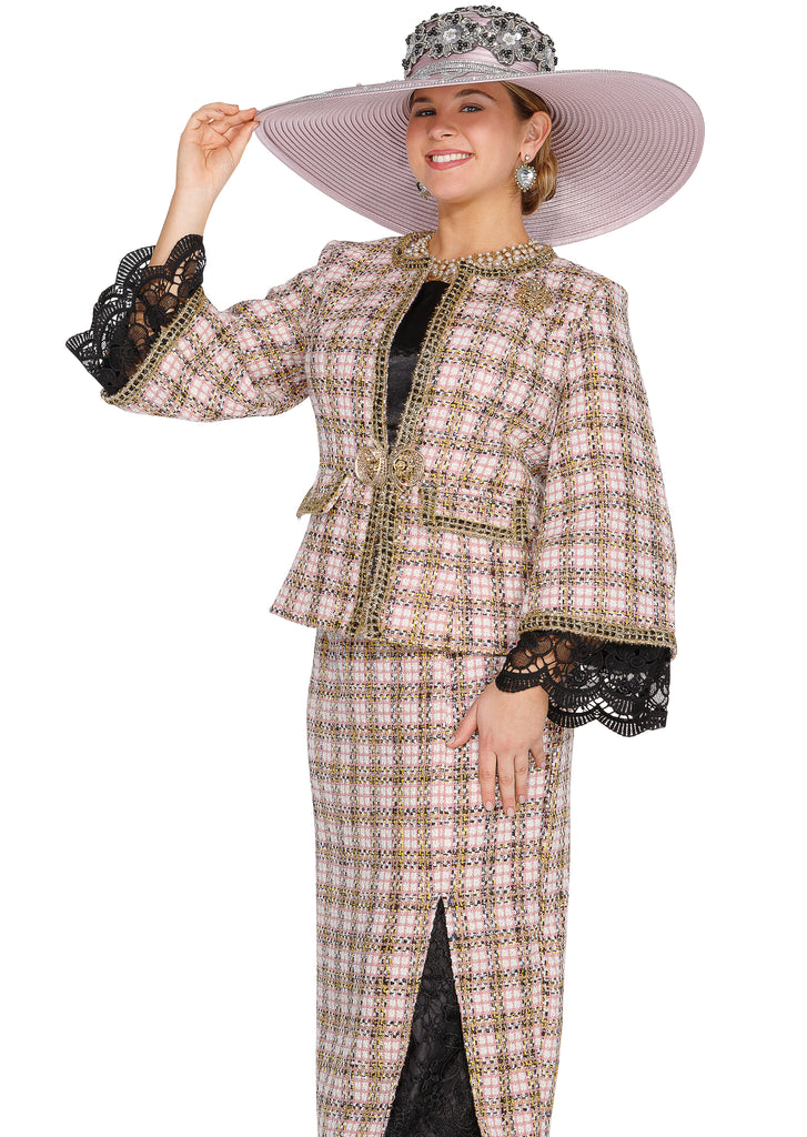 Elite Champagne 6165 pink knit skirt suit