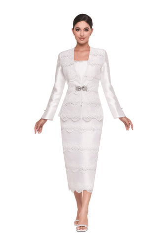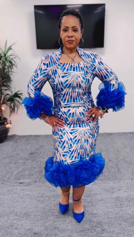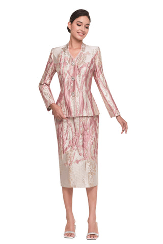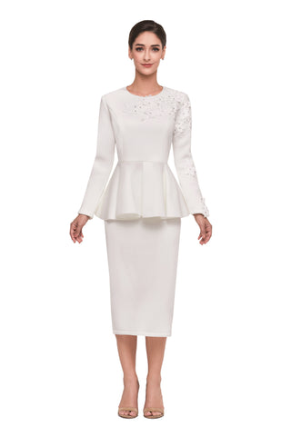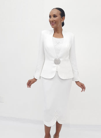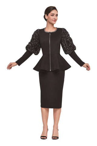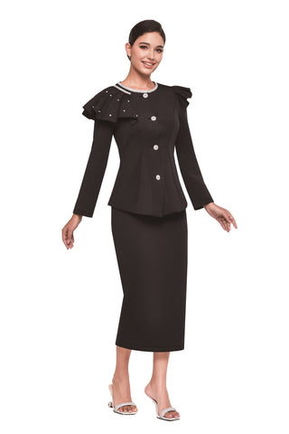 Serafina Fall 2025 features classic church suits and scuba dresses with sparkle and flounce.