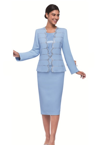 Serafina 4381 3 piece Knit Skirt Suit Colors: Black, Blue Sizes: 8, 10, 12, 14, 16, 18, 20, 22