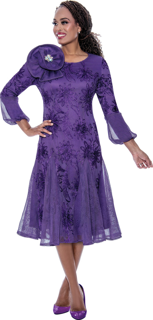 Stellar Looks 600351 1 piece Mesh Dress Color: Purple Size: 8, 10, 12, 14, 16, 16W, 18, 18W, 20W, 22W, 24W, 26W