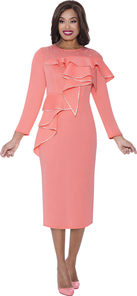 Stellar Looks 600561 1 piece Scuba Dress Color: Coral, Green Size: 8, 10, 12, 14, 16, 16W, 18, 18W, 20W, 22W, 24W, 26W