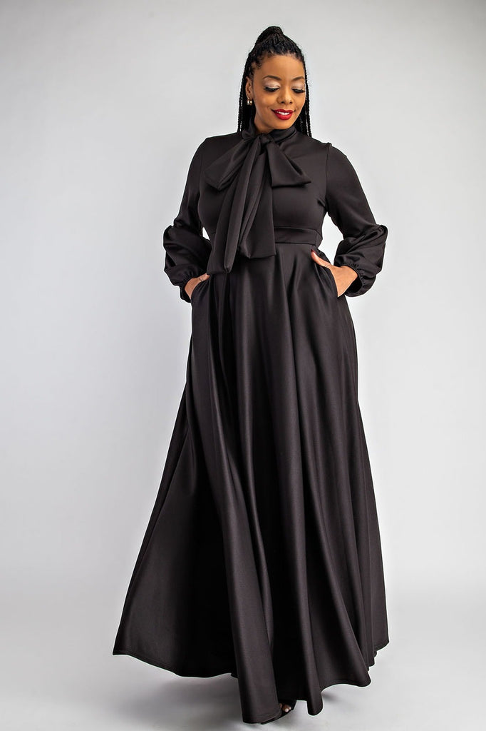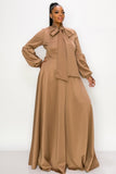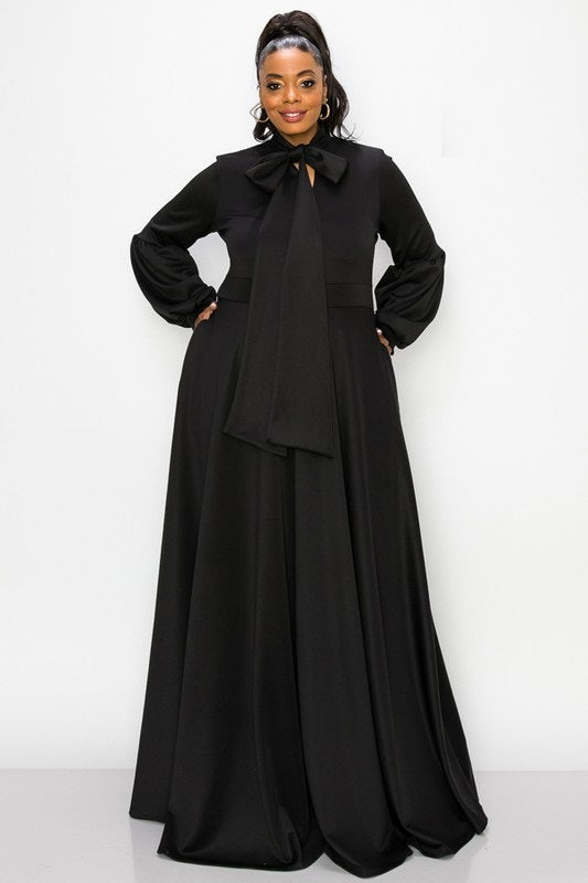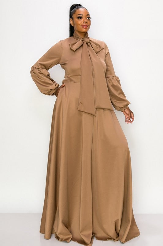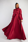 Burgundy Bow Lantern Sleeve Maxi Dress