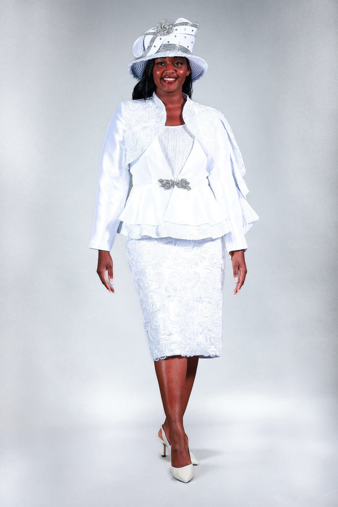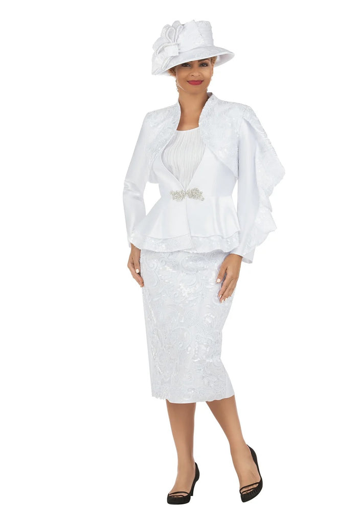 Giovanna G1217 2 piece Silky Twill Skirt Suit Colors: White Sizes: 8, 10, 12, 14, 16, 18, 20, 22, 24