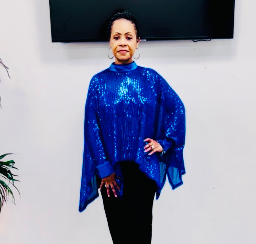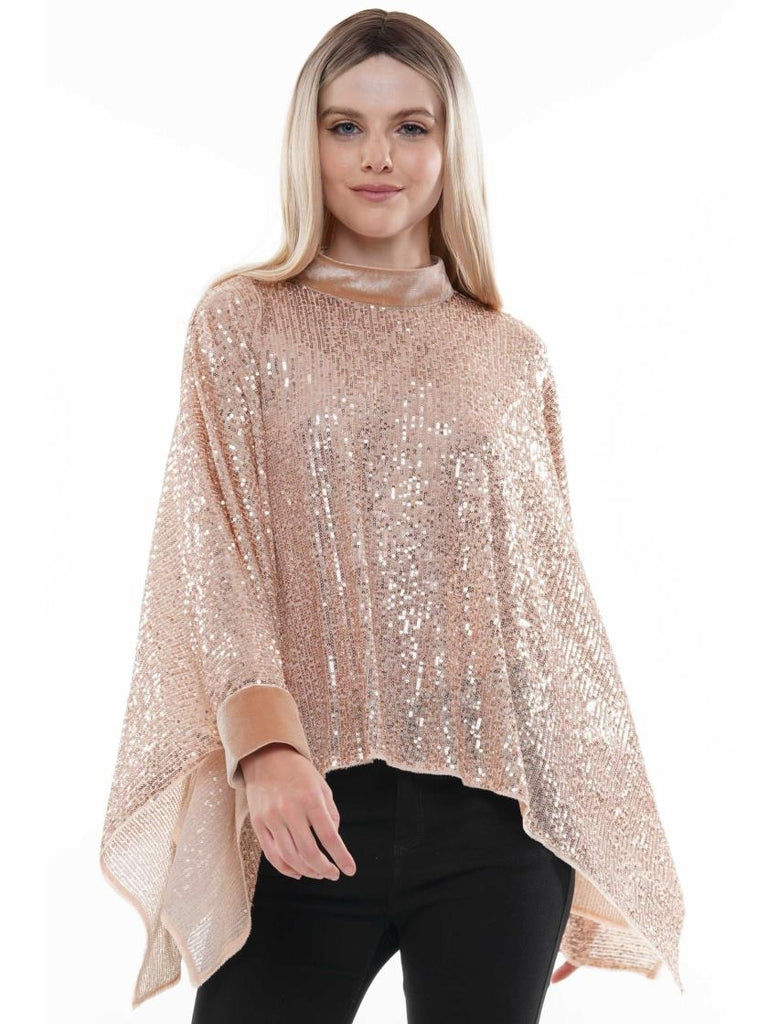 Why Dress T230363 1 piece Sequin Poncho Colors: Beige, Black, Royal Blue Sizes: S, M, L, XL, XXL