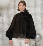 Why Dress T240189 3D Flower Blouse Color: Black Size: S, M, L, XL, XXL