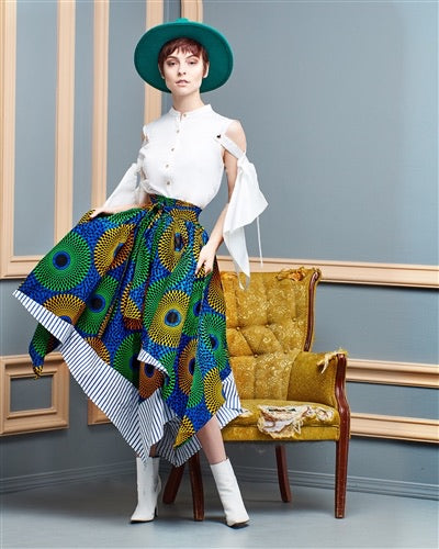 Asymmetrical Stripe Dashiki Maxi Skirt