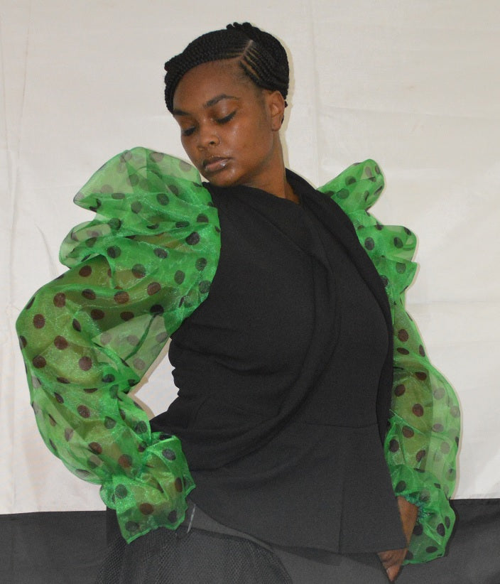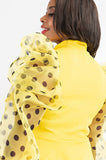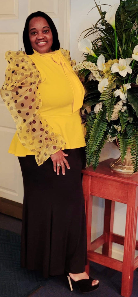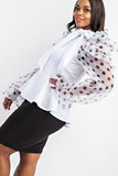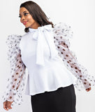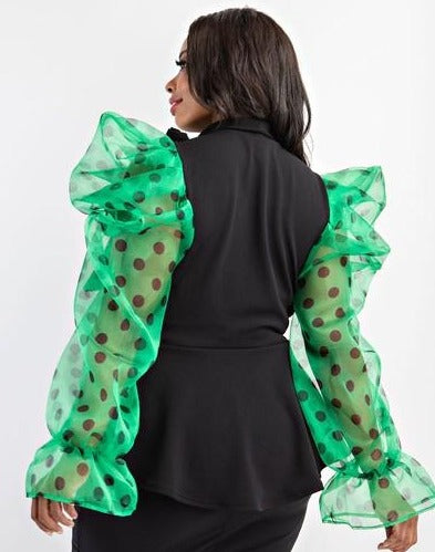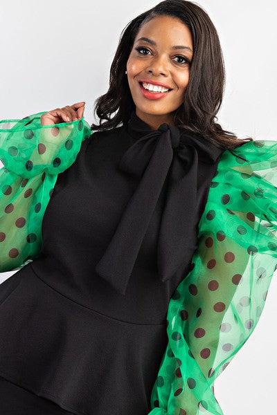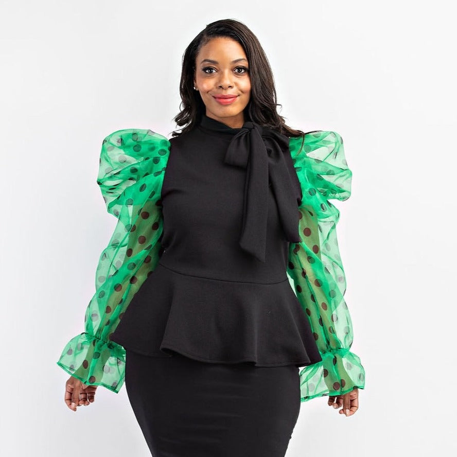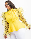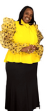 Balloon Organza Sleeve Peplum Top Color: Green, White, Yellow Size: 1X (14/16), 2X (18/20), 3X (22/24)