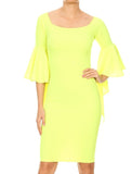 Bell Sleeve Midi Dress 1 piece Stretchable Dress Colors: Hot Pink, Yellow Sizes: S (4/6), M (8/10), L (12/14)