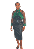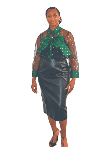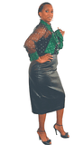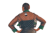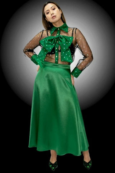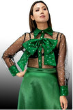 Bow Polka Dot Top 2 piece top with sheer sleeves Color: Green Size: S, M, L (14/16), XL, XXL, XXXL