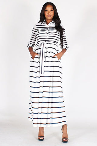 Button Down Stripe Maxi Dress