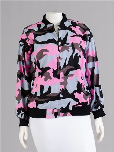 Camouflage Bomber Jacket Colors: Green Camo, Grey Camo, Pink Camo Size: M, L, XL, 1X, 2X
