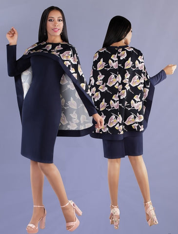 Chancele 9527 2 piece Cape Dress Dress Length: 42” Cape Length: 29" Colors: Navy Sizes: 8, 10, 12, 14, 16, 18, 20