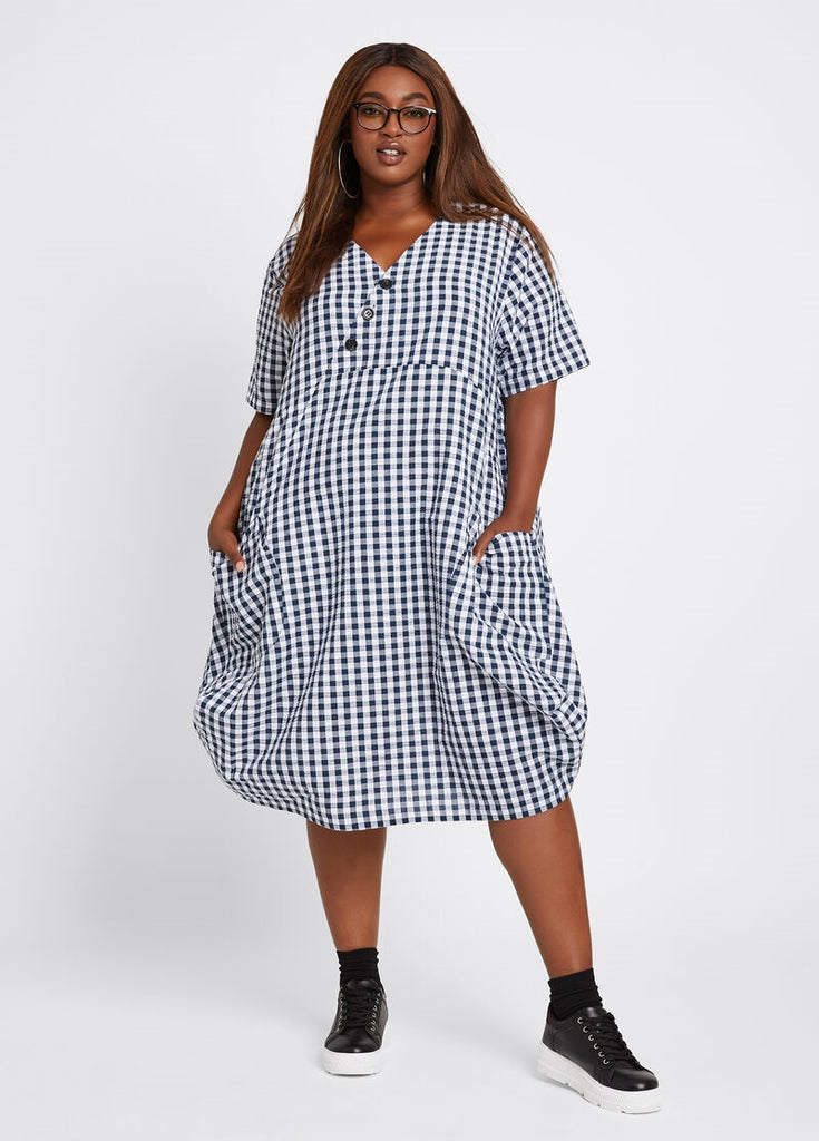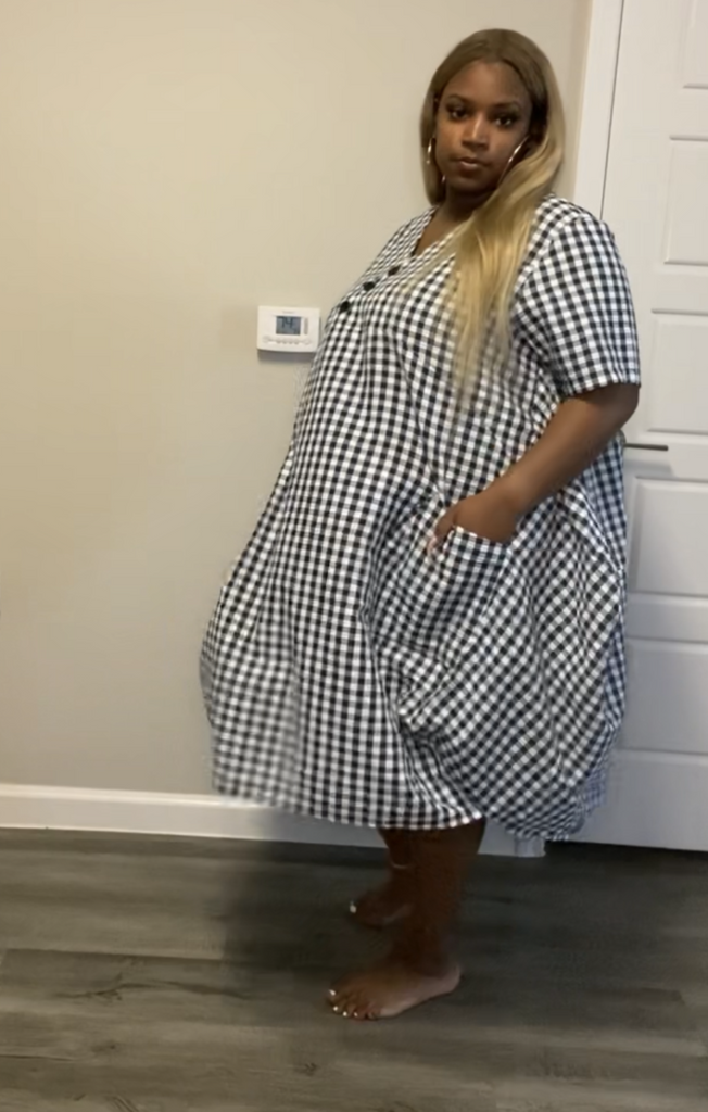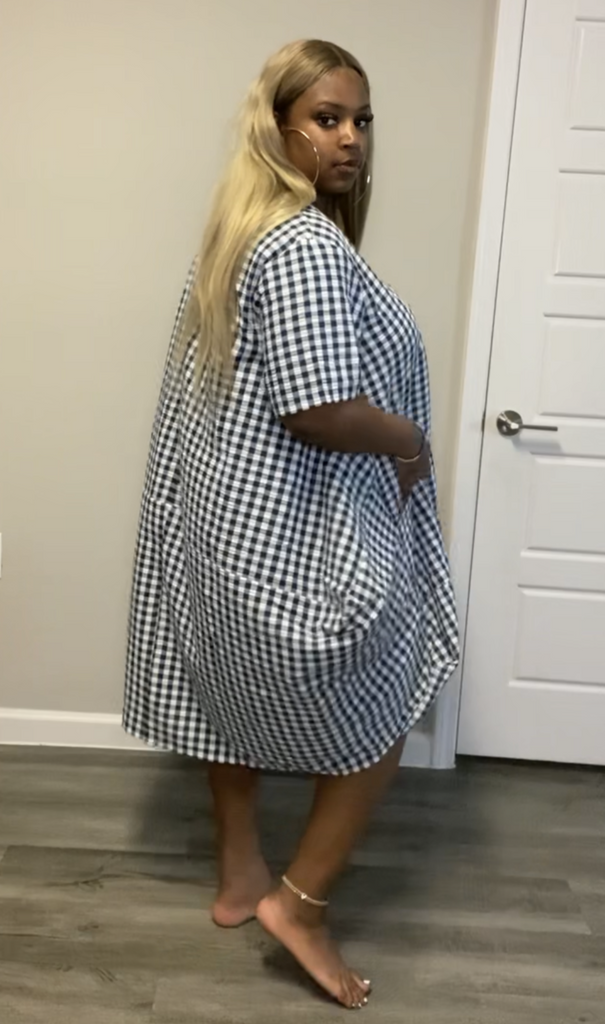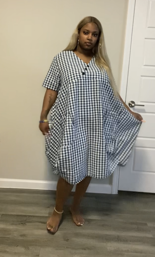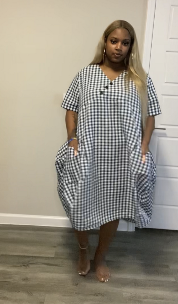 Cocoon Dress 1 piece Dress Colors: Black/White, Navy/White Sizes: S, M, L, 1X, 2X, 3X