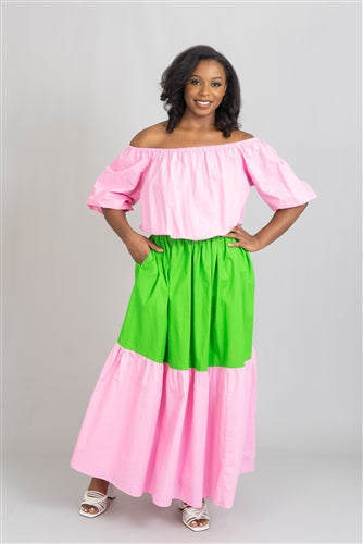 Color Block Maxi Dress Side Pockets Color: Pink/Green, Red/Black, Red/Yellow Sizes: ONE Size FIT ALL (up to 2X)
