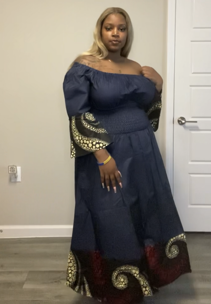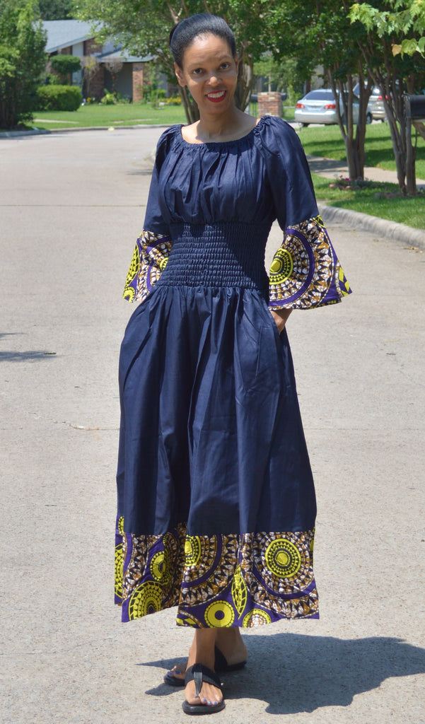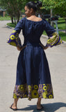 African Print Bell Sleeve Maxi Dress