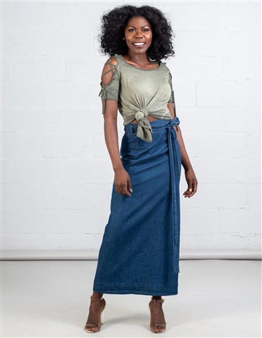 Denim Wrap Skirt 1 Piece Maxi Skirt Colors: Dark Denim Size: One Size Fit All up to size 3X