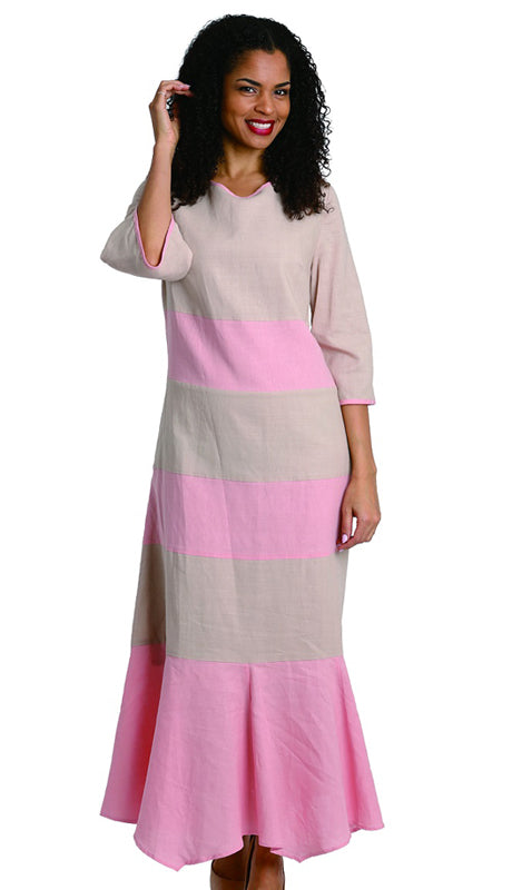 Diana 8212 1 piece Linen Dress Colors: Black/White, Pink/Khaki Sizes: S, M, L, XL, 1X, 2X, 3X