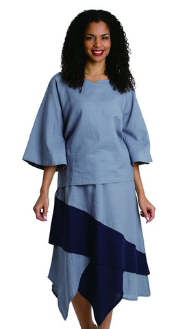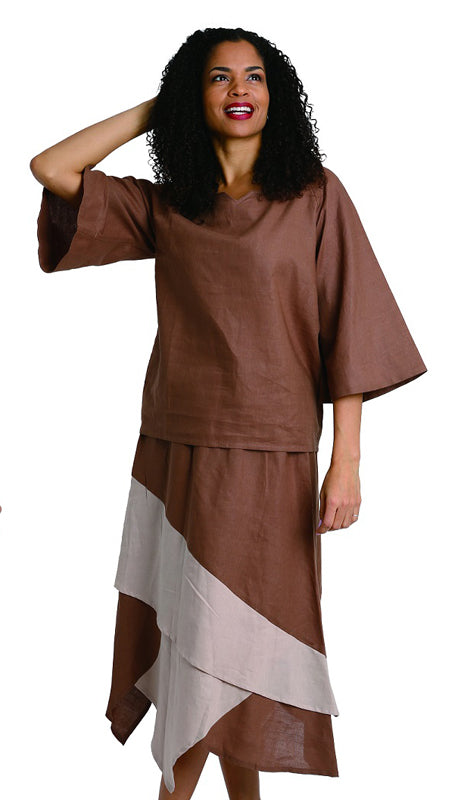 Diana 8214 2 piece Linen Skirt Suit Colors: Brown, Navy Sizes: S, M, L, XL, 1X, 2X, 3X