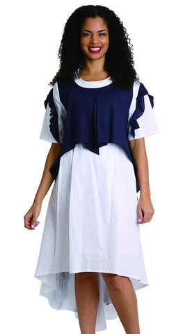 Diana 8217 1 piece Linen Dress Colors: Navy/White Sizes: S, M, L, XL, 1X, 2X, 3X