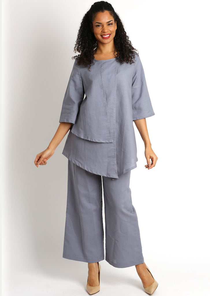 Diana 8220 3 piece Linen Pant Suit Colors: Grey, White Sizes: S, M, L, 1X, 2X, 3X