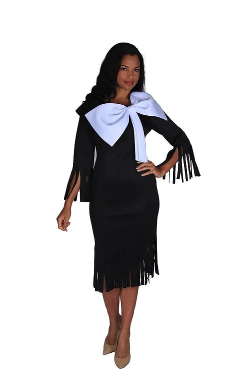 Diana 8308 1 piece Fringe Scuba Dress Colors: Black/White Sizes: 8, 10, 12, 14, 16, 18, 20, 22, 24