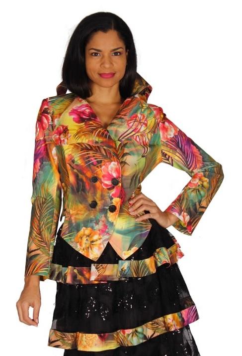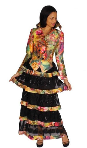 Diana 8541 2 piece Novelty Skirt Suit Colors: Black Multi Sizes: 8, 10, 12, 14, 16, 18, 20, 22, 24