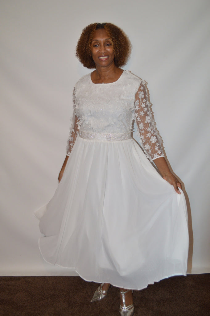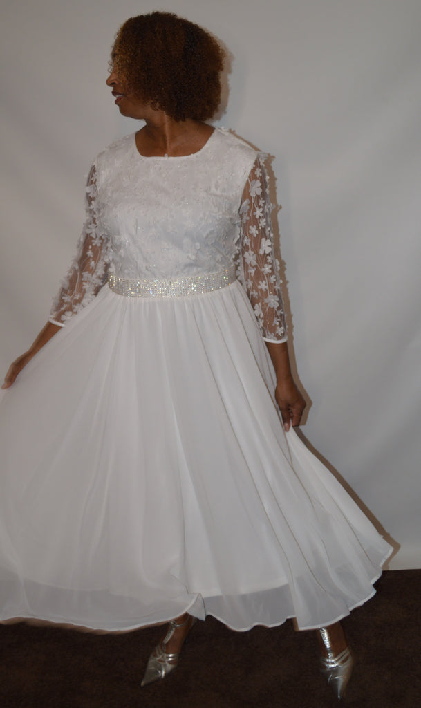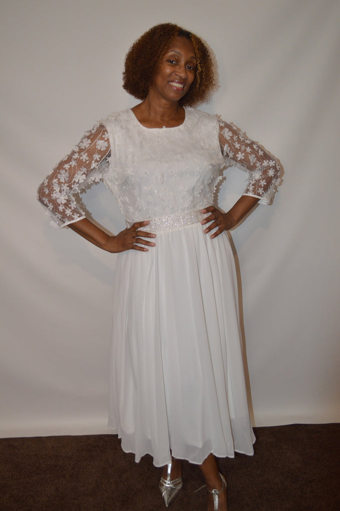 Diana 8561 1 piece Sheer Sleeve Dress Colors: Black, Off White, Red Sizes: 8, 10, 12, 14, 16, 18, 20, 22, 24