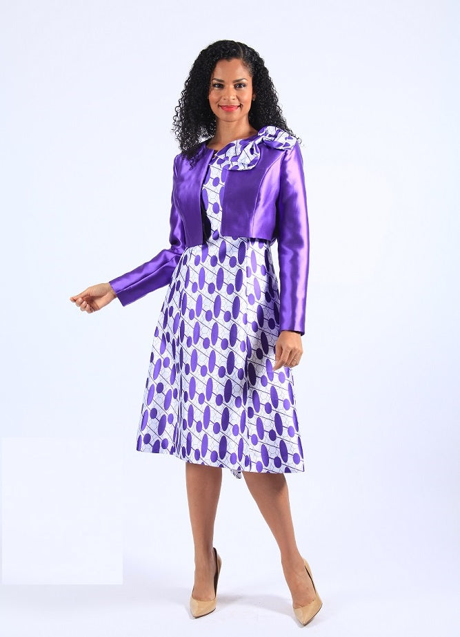 Diana 8615 2 piece Jacket Dress Colors: Blue/White, Purple/White Sizes: 8, 10, 12, 14, 16, 18, 20, 22, 24