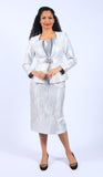 Diana 8666 3 piece Jacquard Skirt Suit Colors: Gold, Silver Sizes: 8, 10, 12, 14, 16, 18, 20, 22, 24